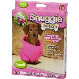 Snuggie for Dogs in Pink - As Seen on TVDog Snuggies! Finally you can keep your dog warm all year long. It's the blanket coat with sleeves. No more struggling with trying to dress your squirmy pet in tight apparel. The Snuggie for dogs has adjustable velcro tabs and an easy step into design that makes dressing effortless. Roomy sleeve design for ease of movement. Dog Snuggies are so comfortable your dog won't even know he has it on. It can easily be worn with collars and harnesses without interfering. Perfect for long walks, playing in the yard, traveling and more! Now your pet can have the same comfort and warmth as you do all year round with our Snuggie for dogs. An absolute must have for fall and winter the Snuggie blanket is also machine washable. The Snuggie blanket will provide warmth all winter long.Recommended Breed Sizing:X-Small: Teacup breedsSmall: Bichon Frise, Chihuahua, Dachshund - miniature, Maltese, Pekingese, Pinscher - miniature, Toy Poodle, Yorkshire Terrier - miniature.Medium: Beagle, Boston Terrier, Cavalier King Charles Spaniel, Cocker Spaniel, Dachshund - standard, Jack Russell Terrier, Poodle - miniature, Pug, Schnauzer - miniature, West Highland Terrier.Large: Bull Terrier, Chow Chow, Collie, Corgi, Dalmation, Doberman, English Bulldog, Labrador Retriever, Wheaten Terrier.Fit Tips:Length: Measure from the base of dog's neck to the beginning of tail.For pudgy, furry and deeper-chested dogs we recommend going one size larger...